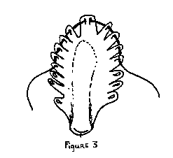 | 2. Cut out the shoe from light to medium weight leather, remembering to reverse the pattern for one foot, since the pattern isn't symmetrical. Punch the holes as shown on the pattern and trim the holes on the flaps to long ovals as shown in Figure 1. | ![]() |